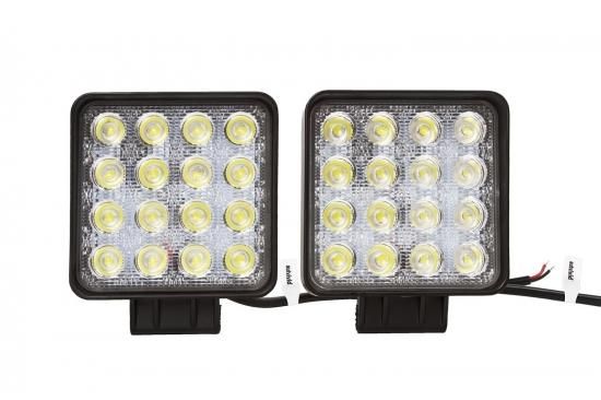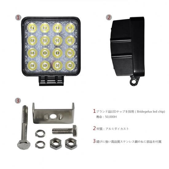 LEDワークライトCREE製 48W LED作業灯 広角タイプ 角型 16連 10-30VDC対応防水・防塵・耐衝撃・長寿命 車外灯 機械・オートバイ・自動車・トラック用品 汎用作業灯【2個セット】 WL-48W-16L-square-wide-2